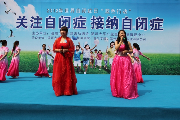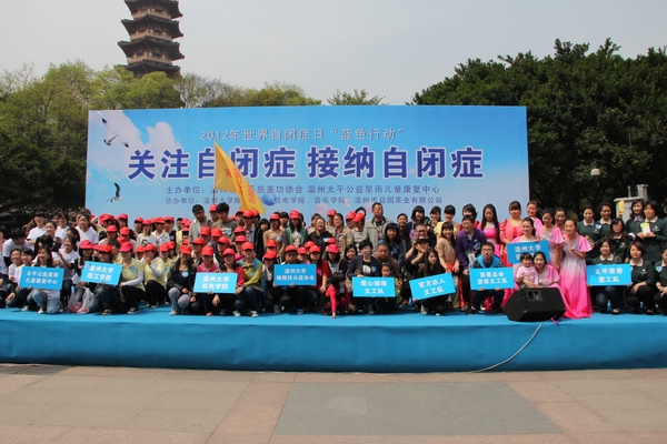 4月2日为世界自闭症日“蓝色行动”,为此,在温州市松台广场,我院志愿者协会和温州大学瓯江学院人文与外国语分院青年自愿者协会,温州大学机电工程学院青年自愿者协会,温州大学橄榄枝公益协会和温州市益圆茶业有限公司一起举办了关注自闭症,接纳自闭症的活动。我们的志愿者给大家表演的歌伴舞和古筝合奏节目,赢得了大家的阵阵掌声。通过这次活动我相信会有更多的人去关爱关心他们。会有更多的人去理解他们,帮助他们。文/卢依