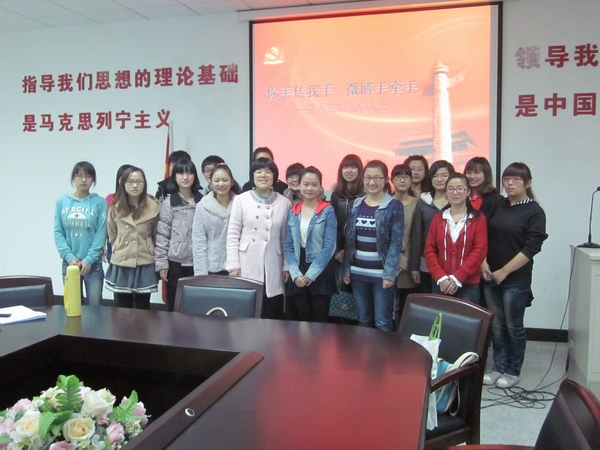 3月31日,由我院党员之家承办的“你手传我手,微博手牵手”优秀党员宣传活动表彰大会在大学生活动中心党员之家举行。我院辅导员郑颖老师,11名优秀党员及各学院的党员之家联络员出席了会议。