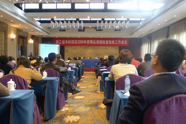 2011年11月15日威尼斯wnsr666教师王晓佳参加了在杭州举办的2009年度省精品课程建设项目验收工作会议。本次验收工作共有浙江省内33所本科院校、8所独立学院的100门课程,47所高职高专院校的100门课程,参加检查验收。省级精品课程建设项目负责人、课程组成员及青年教师代表共500多人参加了会议。