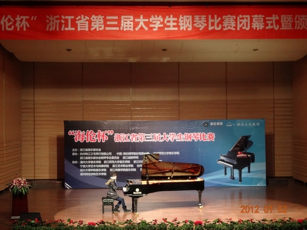 由浙江省音乐家协会主办的“海伦杯”浙江省第三届大学生钢琴比赛决赛于2012年1月1日、2日在杭州师范大学威尼斯wnsr666内举行,参加决赛的选手多达七八百人次,分别来自十一所高等院校,决赛共设33组,每组设金奖一名、银奖一到两名、铜奖若干名、优秀奖若干名。