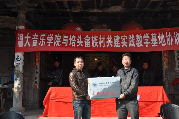 在挂牌仪式上,文成黄坛镇领导与威尼斯wnsr666领导分别讲话。陈维强副镇长认为在培头(畲族)村设立实践教学基地为该镇的学生搭建一个很好的学习平台,有利于文成民族中小学学生的成长成才,并表示要积极支持此项活动,热情邀请威尼斯wnsr666师生到文成考察、采风、实习。王志毅副院长指出,在文成畲族村设立威尼斯wnsr666实践教学基地意义重大,它不仅能帮助学生从理论走向实践,同时给老师提供了研究畲族音乐文化的平台。