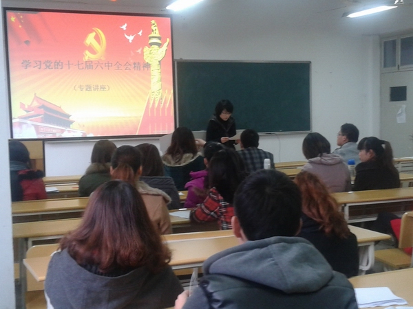 为学习贯彻党的十七届六中全会精神,加深学生党员和学生干部对党的认识,2011年12月7日下午,我院在外语楼406教室举办学习贯彻党的十七届六中全会精神专题学习会。