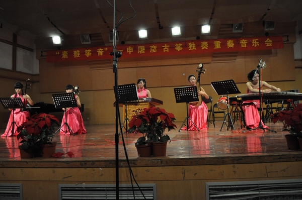 2011年11月24日晚,09音本的申屠彦举办“素雅筝音”古筝独奏重奏音乐会。温州市少年宫器乐部部长熊璐老师、我院器乐教研室老师和有关学生欣赏了音乐会。