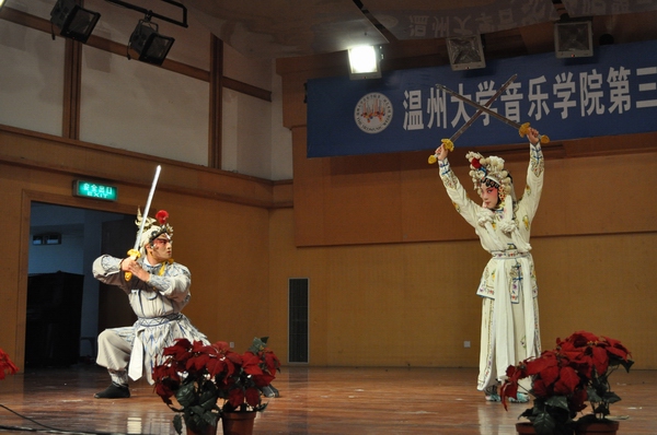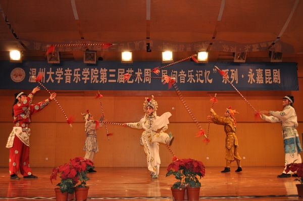 2011年11月24日下午,威尼斯wnsr666第三届艺术周已进入第四天,一场精彩纷呈的永嘉昆曲表演在北校音乐厅如火如荼地进行。