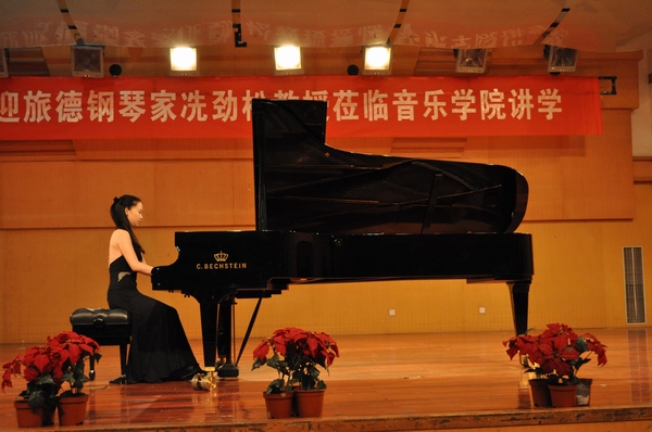 音乐会安排的非常紧凑。冼教授先给我们作了一段简短的演讲,意图告诉我们每个人都要知道自己学习音乐的目的,提出无论以后是否要走专业道路,基本功的锻炼是必不可少的。冼教授讲解思路清晰,话语幽默,并就弹奏中如何表达音乐的内容做出了自己独到的见解。