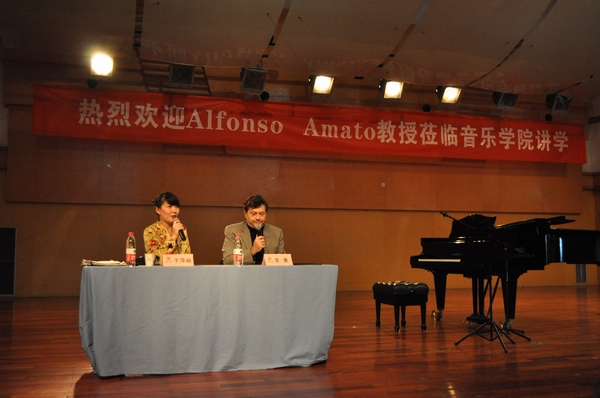 随后,意大利Alfonso先生为我院师生做了“声乐演唱与钢琴伴奏的合作关系”的精彩讲座。Alfonso先生以八首外国经典歌曲和两首中国歌曲为例,从作品背景、钢琴弹奏的技巧及人声与钢琴伴奏的融合等方面进行了详细的分析和阐释,并与天津威尼斯wnsr666于萍丽教授现场示范,生动形象地传授了知识和技巧,并给每位师生带来了视听享受,赢得了在场师生的阵阵掌声。师生们踊跃发言,与Alfonso先生形成了有效的互动,气氛热烈。师生们纷纷表示,此次讲座师生们表示受益匪浅。