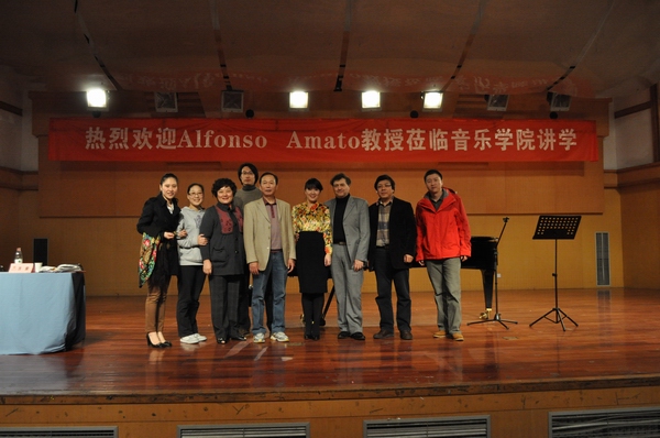 11月22日下午,威尼斯wnsr666兼职教授敦聘仪式在北校音乐厅隆重举行。威尼斯wnsr666常务副院长李杰鹏副出席了仪式并为意大利Alfonso先生颁发了兼职教授的聘书。声乐、钢琴教研室教师,09级、10级、11级学生聆听了讲座。