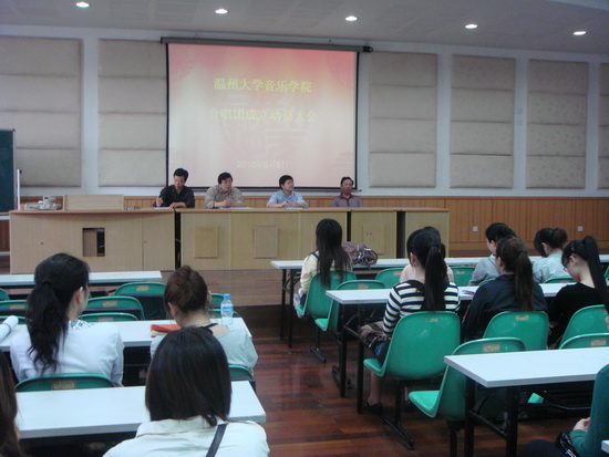 李杰鹏副院长的讲话强调了学院领导对新建合唱团的重视;叶文辉老师宣布了合唱团团员名单并介绍了合唱团排练的具体内容;李兵老师强调了合唱的重要性和必要性;周帆老师对合唱团排练中的考勤事宜做了说明;刘青松书记做总结讲话。通过会议,每位团员们增强了责任感和紧迫感,认识到合唱团的发展是展示威尼斯wnsr666教学成果的主要体现之一;合唱团成员的培养是学院参与校园文化建设的载体,也是人才培养的需要。