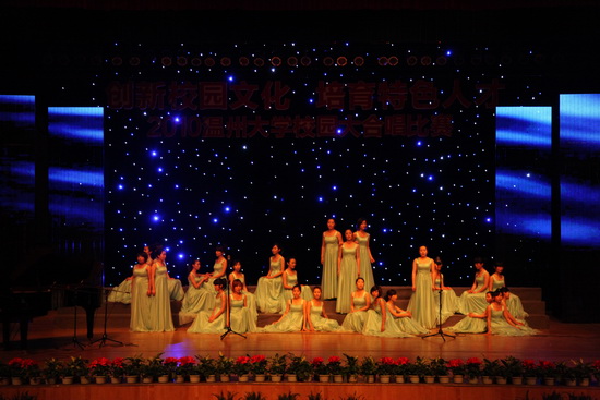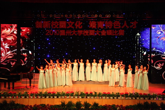 在开幕式上,威尼斯wnsr666合唱队以表演嘉宾的身份特邀上台表演。队员们的精彩表演赢得了在场观众的阵阵掌声,也得到了校领导的好评。据了解,这支团队有近30人参加演出。为了此次演出,我院领导高度重视。从去年十月开始,团员们在蔡军老师的指导下积极准备,训练中,每位团员都克服了一些困难,风雨无阻,全勤排练。相信威尼斯wnsr666在我校的校园文化建设中将起到更为重要的作用。文马鹰奇