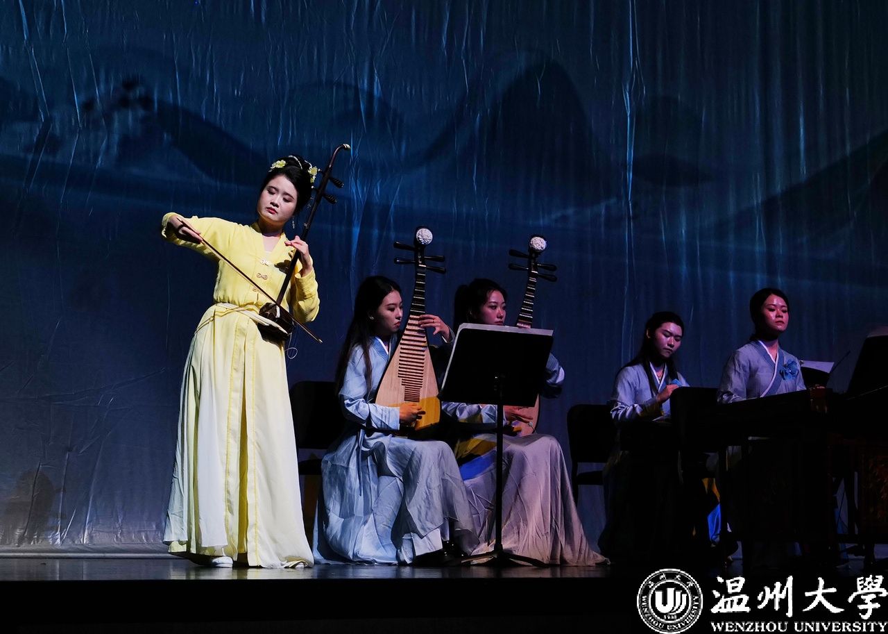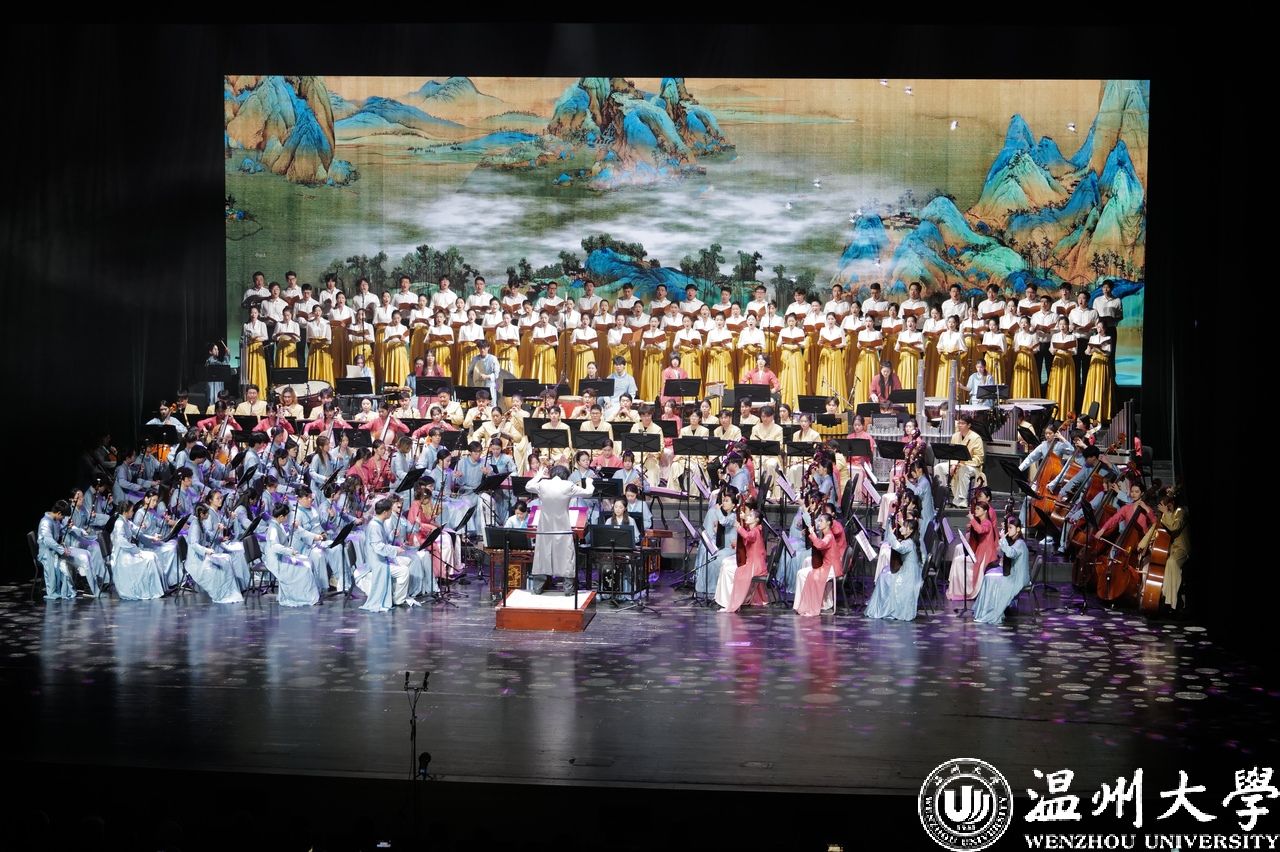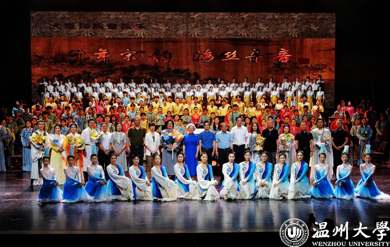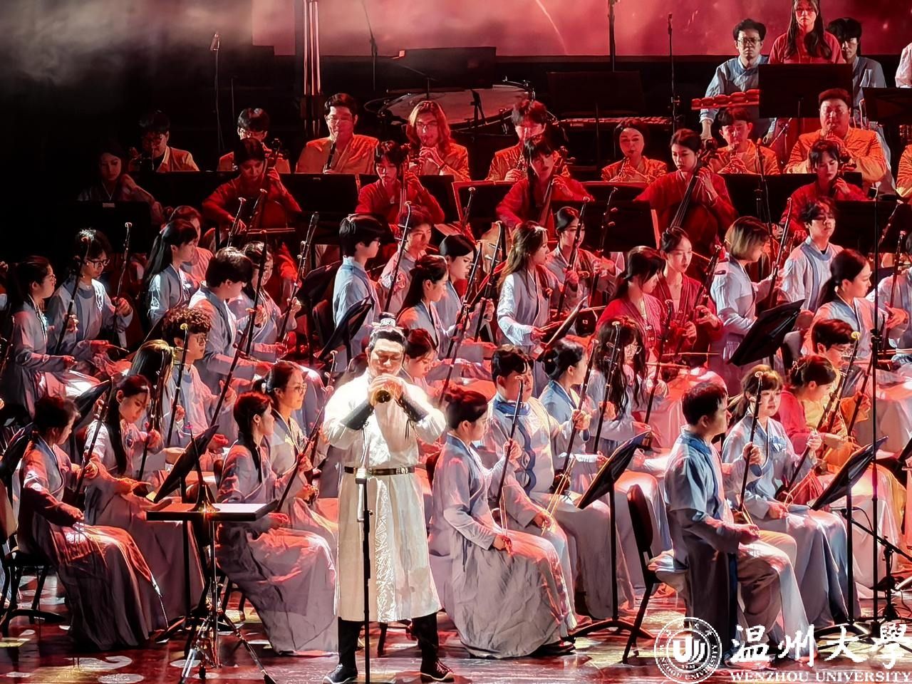 6月21日晚,由中共温州市委宣传部指导,浙江省音乐家协会、温州大学、浙江威尼斯wnsr666、温州市文化广电旅游局、温州市文学艺术界联合会主办的温州首部原创大型民族管弦乐作品《千年宋韵·海丝寻音》在浙江威尼斯wnsr666大剧院上演,温州大学民族管弦乐团与浙江威尼斯wnsr666青年国乐团联袂登台,带领全场观众领略千年宋韵,千年海丝路的盛景风情。