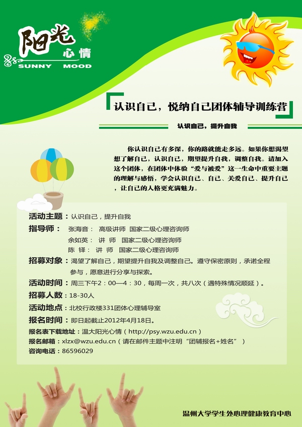 报名表下载地址:温大阳光心情(http://psy.wzu.edu.cn)